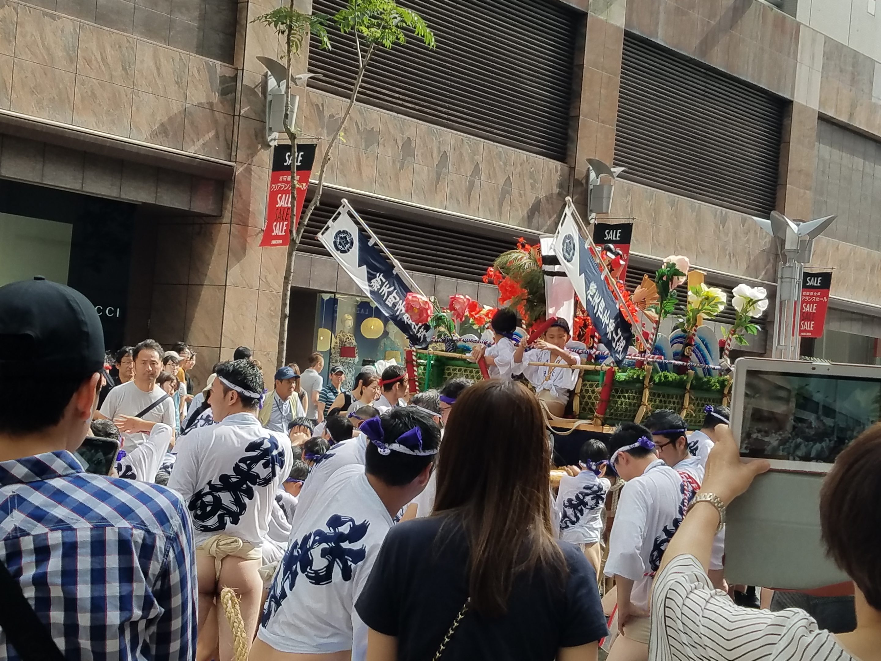 この日は子供山笠が天神を走ってました